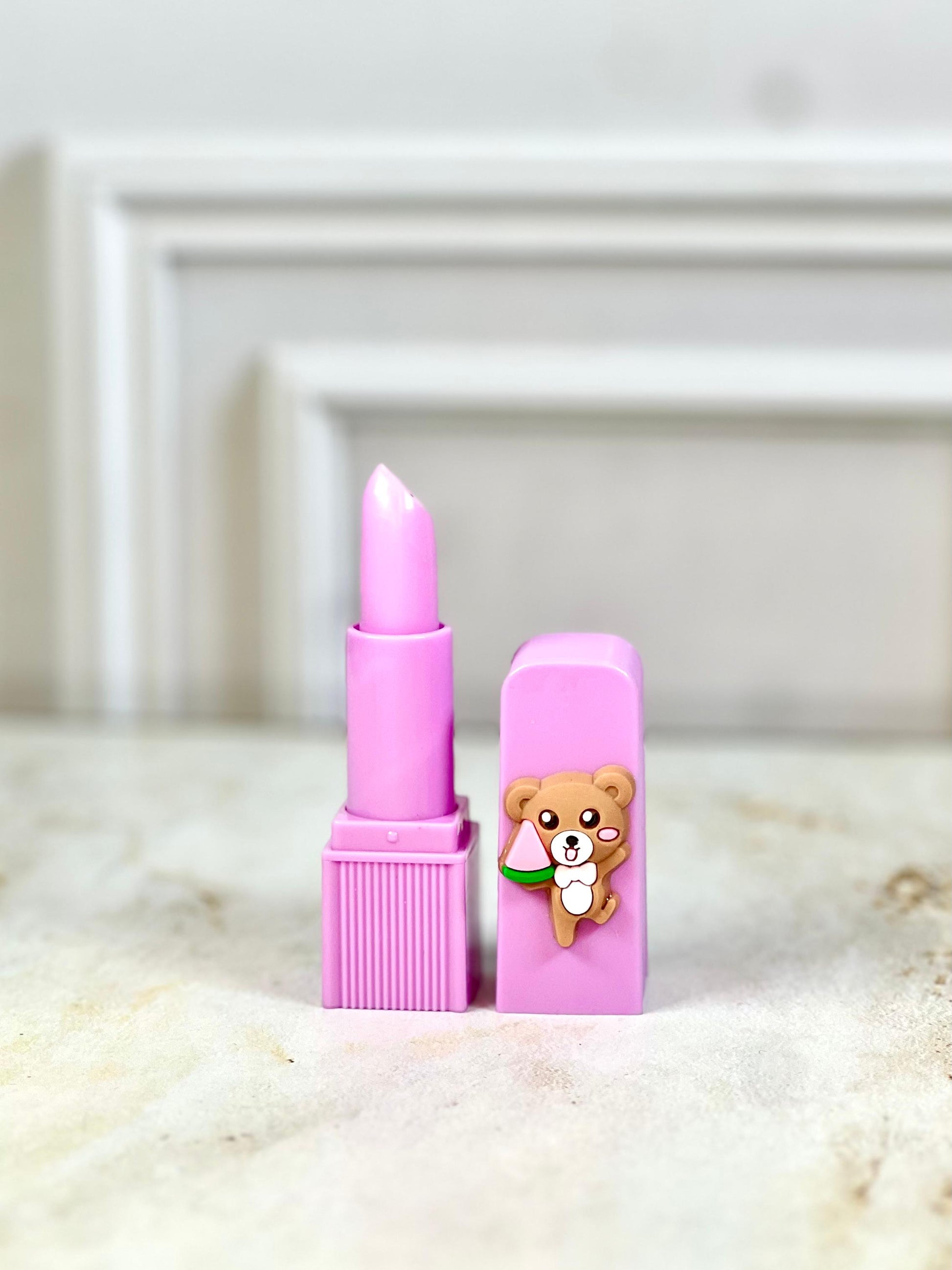 Labiales mágicos con forma de ositos, cambian de color según el pH de tus labios 🌈. Aportan un tono rosado personalizado mientras hidratan profundamente. ¡Un toque divertido para tu makeup!